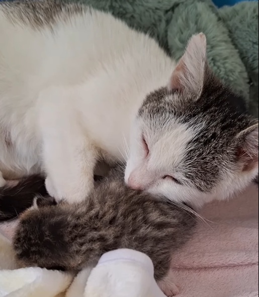 Soms klopt ineens alles… en dan wordt een klein wonder werkelijkheid. Gisteren, begin van de middag, kwam er bij ons een melding binnen van een mamapoes. Ze zou één kitten hebben gekregen, maar dat kitten was spoorloos.W e namen de mamapoes mee – in de hoop dat we haar snel konden herenigen met haar kleintje.