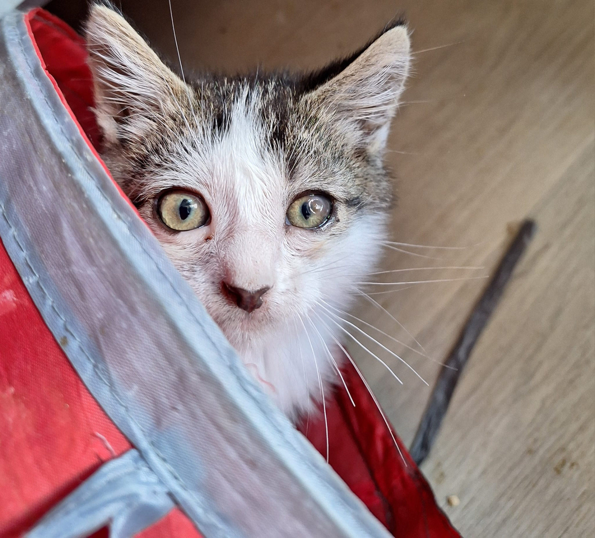 Zoals bijna elke opvang momenteel hebben we geen plaats meer. Voor Loki was ook geen plek. En deze kleine spruit heeft toch echt een veilige, warme mand nodig. Dus maar tijdelijk een bench in een kamertje apart.