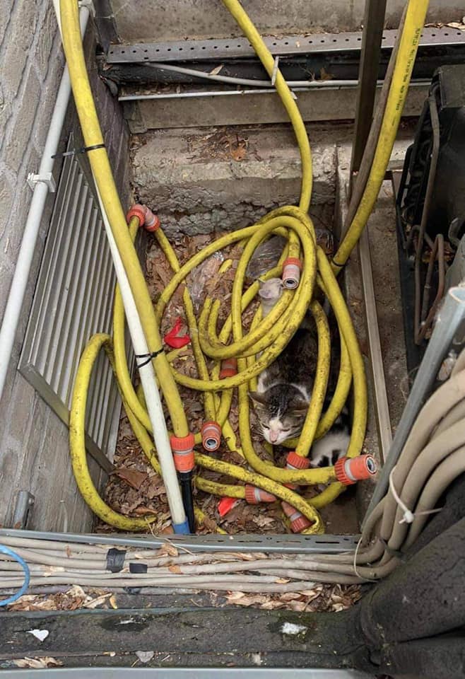 Mama met 3 kittens zaten op een gevaarlijke plek, in een put. Deze plek was dicht bij een school. Mama was daar al gezien en kreeg eten af en toe. Maar binnenkort gaat de school dicht en zal er voor mama en haar kindjes geen eten zijn. Dit gezin hebben we dan ook snel veilig binnen genomen.