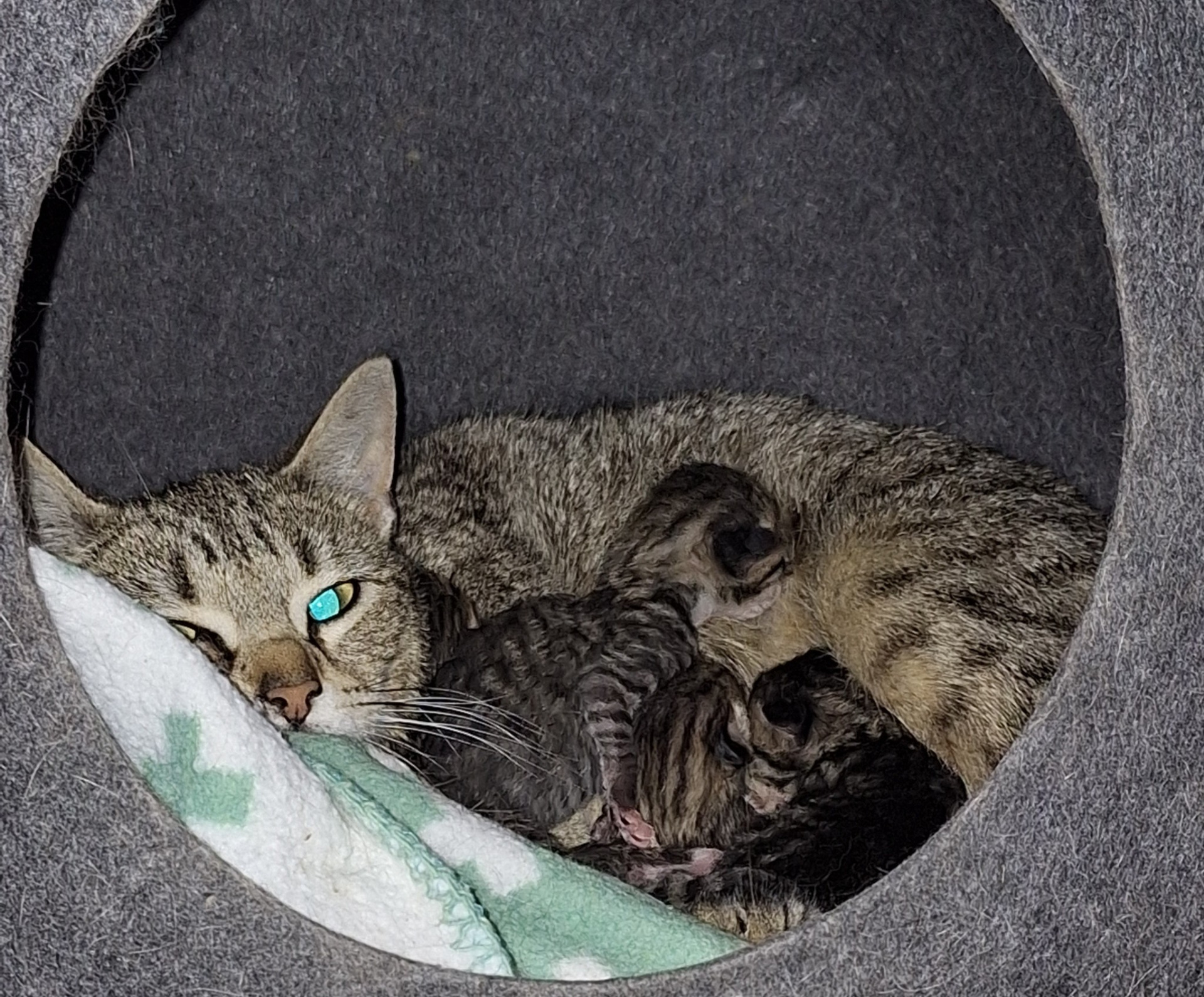 Wij kregen melding van een jong zwanger katje in een zwerfkattenpopulatie. Voor kittens geen veilige plek. Daar komt bij dat we niet willen dat de groep nog groter wordt. Uiteraard moeten daar katten ingevangen gaan worden voor castratie/sterilisatie. Maar deze mama wilden we alvast veilig stellen.