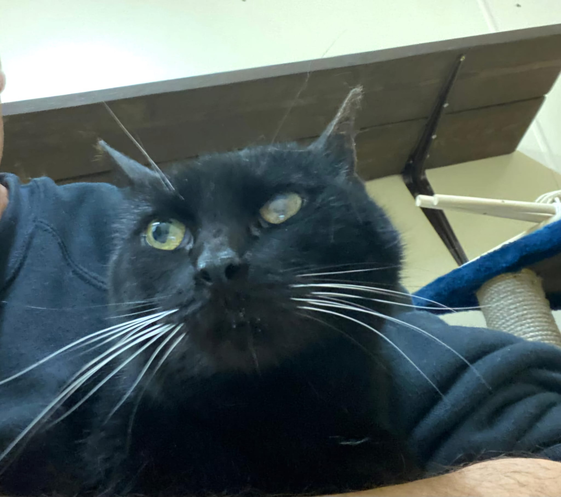 Helaas zit ik al heel lang in opvang. Ik ben nog wel jong maar geen kitten meer. Daar komt bij dat ik als kitten niesziek ben geweest en dit is nooit goed hersteld. Zo zie je dat 1 oogje is aangetast. Ook mijn luchtwegen zijn niet optimaal. Hier krijg ik.medicijntjes voor.