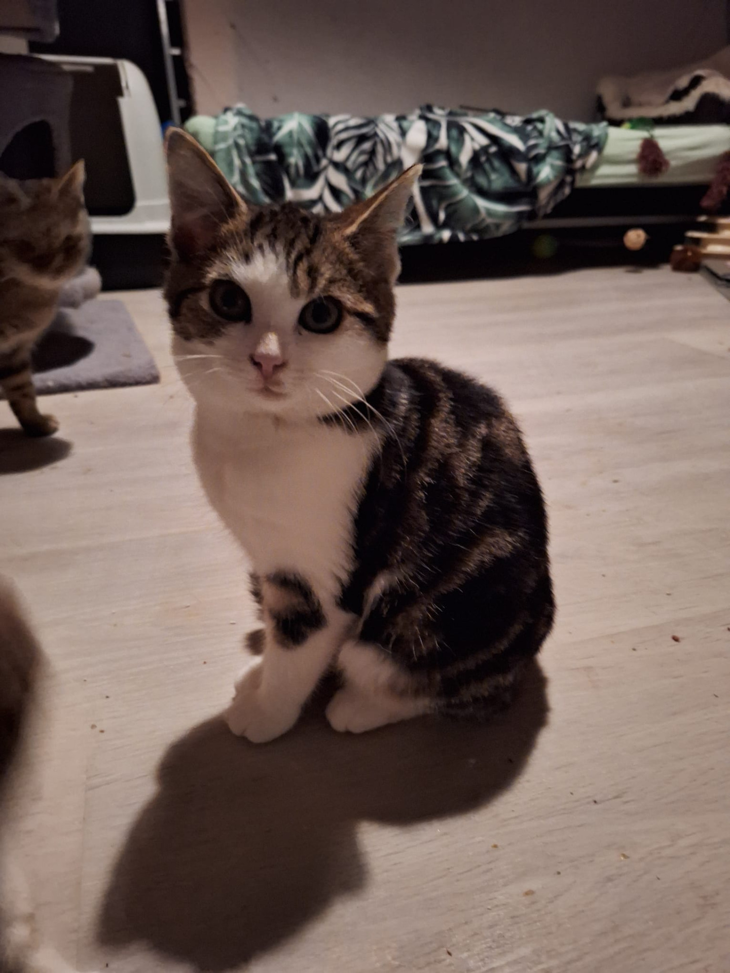 Mijn naam is Lotje, een klein maar dapper meisje met een bijzonder begin. Ik werd gevonden in een tuin, tussen het gras en de schaduwen, door mensen die heel lief waren maar helaas allergisch. Ze konden me niet houden, hoe graag ze dat misschien hadden gewild. En zo kwam ik terecht bij Kato, in een huis vol nieuwe geuren, geluiden en spannende indrukken. Wennen duurt even – maar ik ben sterker dan ik eruitzie.