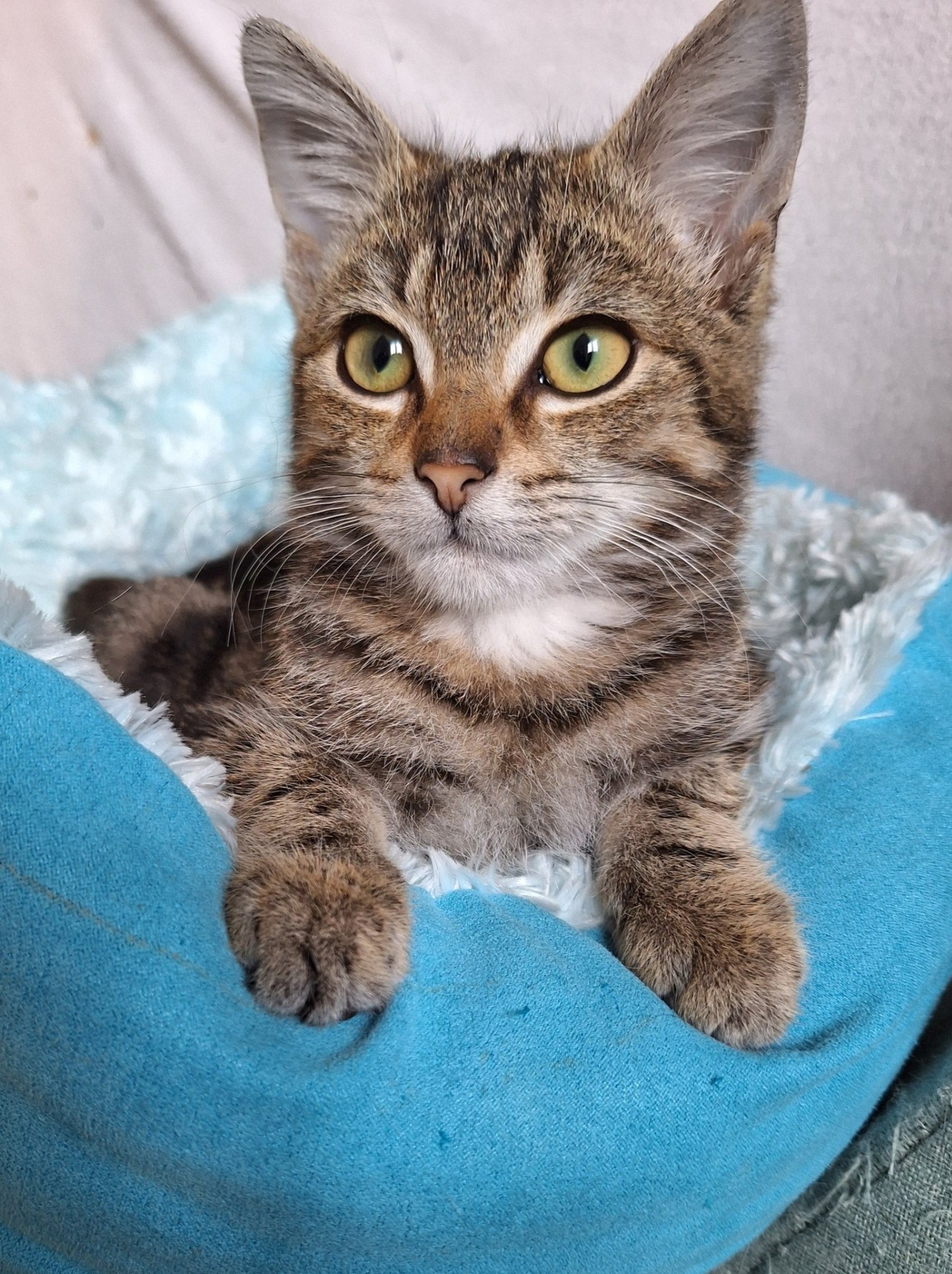 Elke dag laat ik lekker zien dat ik geniet: van spelen, van knuffelen, van eten, van simpelweg kitten-zijn. Ik mag dan een breuk hebben in mijn lijfje… maar mijn hartje? Dat is sterker dan ooit.